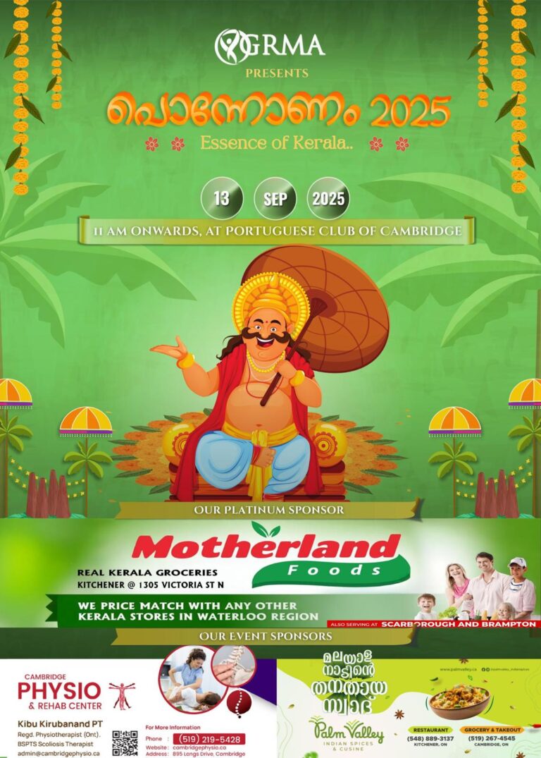 At the Grand River Malayalee Association (GRMA), we are more than just a community; we are a family that celebrates the vibrant culture and traditions of Kerala in the heart of Ontario, Canada. As a non-profit cultural organization, we bring together the Malayalee diaspora in Kitchener, Waterloo, Cambridge, and Guelph areas to create a strong, supportive, and inclusive community. By choosing us, you gain access to cultural enrichment, a platform to preserve heritage, and opportunities to connect, grow, and contribute meaningfully to society. Join us in celebrating unity, diversity, and the spirit of Kerala, away from home!
